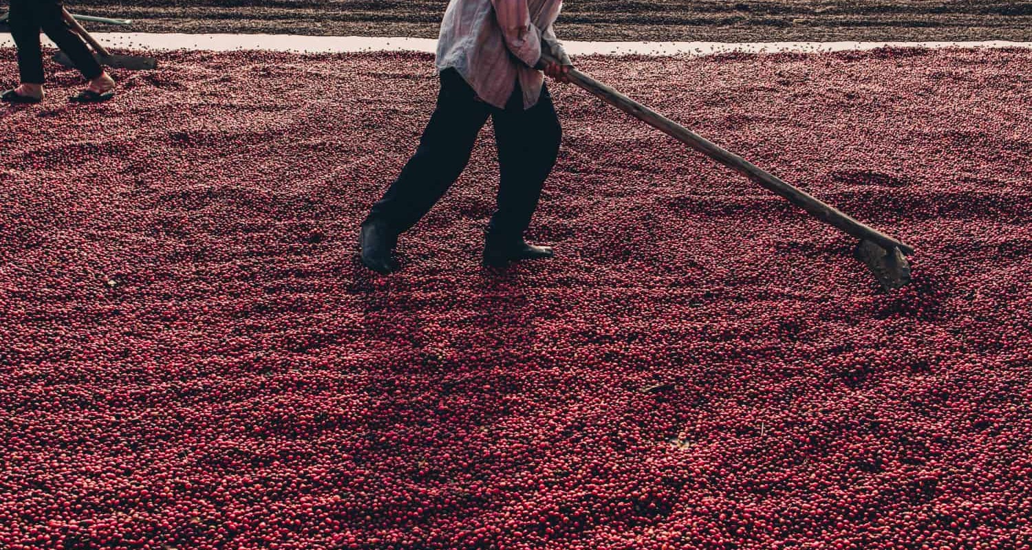 Ripe cherries are selectively picked, sorted, and processed (washed, honey, or natural) at the estate level.